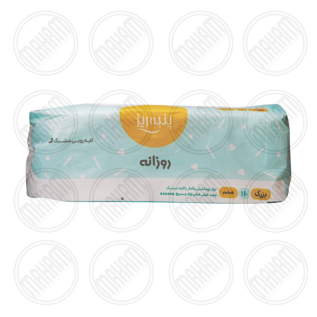 نوار بهداشتی بالدار سایز بزرگ پنبه ریز ۱۰ عددی